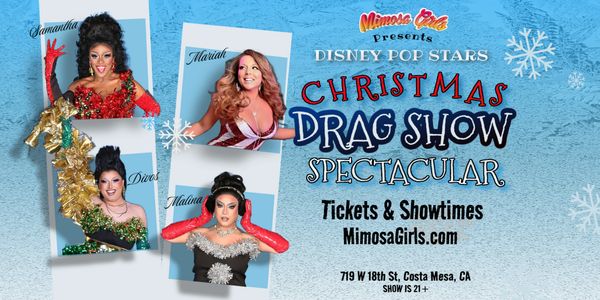Pop Divas, Disney fantasy, Christmas sparkle, and fierce Drag energy collide for the most amazing holiday Drag parody show in Orange County 🎀👑🥂❄️